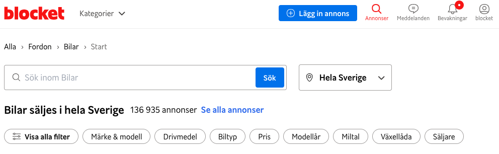 Eine gute Anlaufstelle für PKWs, Motorräder aber auch Wohnwagen und Boote ist blocket.se. Auf Schwedens größter Plattform für Neu- und Gebrauchtfahrzeuge inserieren sowohl Privatpersonen als auch die meisten Händler und Autohäuser. Weitere Alternativen sind bytbil und Wakey oder wer gerne Fahrzeuge ersteigert Kvdbil.